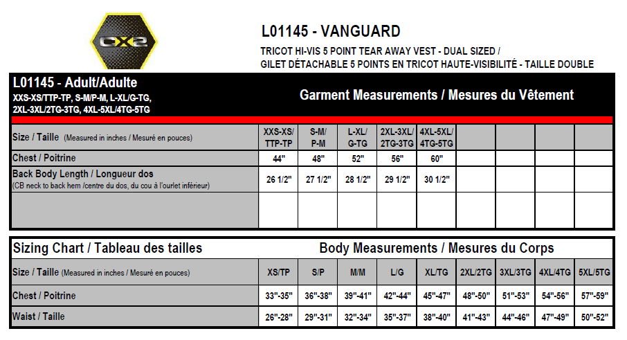 Canada Sportswear Vanguard - Tricot Hi-Vis 5 Point Tear-Away Vest - Dual Sized L01145
